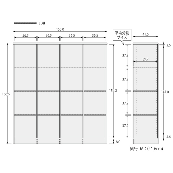 サイズ(外寸) W155.0×D41.6×H166.6cm