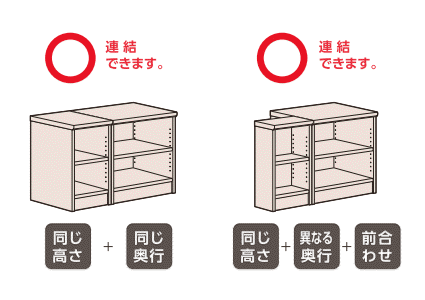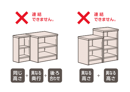 ラックを連結する場合は、連結する全てのラックに「連結穴加工」が必要となります。